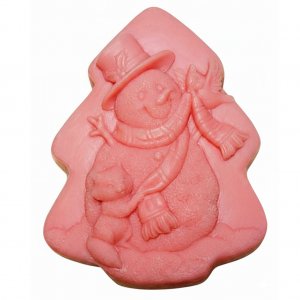 Элит-форма Снеговик в шляпе имеет в основании трехъярусную елку и 3Д Снеговика в шляпке с чудным котенком и птичкой. 3d форма Снеговика позволяет поэтапно наносить разноцветные мотивы на заготовку. Элементы одежды Снеговика, его нос-морковка, котенок, птичка, – все это может приобрести уникально выбранный Вами цвет. Вы можете поработать не только с цветами, но и со структурой мыльца. Елка может быть сделана из прозрачной глицериновой основы, а снеговик абсолютно белым и непрозрачным. Вы можете включить в основу, используемую для елки не только краситель, а и всевозможные украшения, блески, глиттер. Ведь это мыло-елочка. А можно просто купить силиконовую элит-форму, залить однотонной основой и наслаждаться ароматом и натуральностью мыла, сделанного своими руками.
