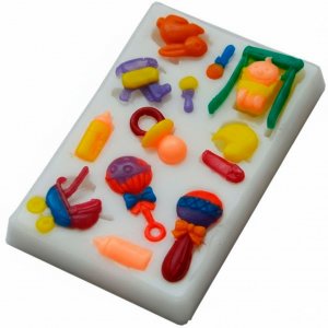Силиконовый молд – это гибкая объемная форма для создания изделий определенного вида и текстуры. С помощью фигурок из молда Вы сможете очень красиво и оригинально украсить как маленькое так и больше мыло придав ему оригинальности. Используется для производства и декорирования кондитерских изделий. С его помощью осуществляется работа с разного рода пластичными массами, как пищевого, так и не пищевого характера. Это может быть марципан, мастика, мармелад, мыло, воск и пр. Молды из силикона абсолютно безопасны для здоровья, не имеют запаха и вкусовых оттенков. Легко переносят даже самые высокие температуры. Размеры фигурок на молде от самой маленькой до самой большой - длина/ширина/высота: 11-27мм/5-17мм/1-6мм.