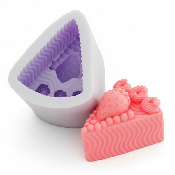 Силіконова еліт-форма для мила Полуничний пиріг, для мила, вагою ≈ 70 грам, в подарунок всім ласунам. Форма має реалістичні обсяги трикутного шматочка торта з великої полуницею, ягодами і кремом. Розміри форми: Довжина / Ширина / Висота в мм 72/60 / 38. Українське підприємство виготовило форму з еластичного силікону, що витримує охолодження в морозилці і нагріву в печі.