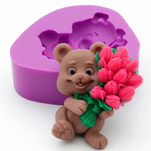 Ведмедик з тюльпанами 51 г 2D силіконова еліт-форма (1 шт)